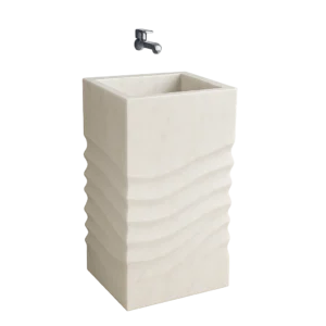 Modern Pedestal Marble Sink – Wave Pattern Freestanding Stone Basin