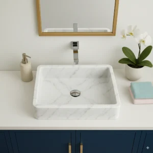 Rectangular Countertop Marble Sink – Modern Bathroom Basin