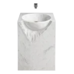 This freestanding marble pedestal sink is designed with clean geometric lines and a refined minimalist structure, making it a statement piece for any modern bathroom. Expertly carved from solid marble, it combines durability with timeless elegance. The pedestal form ensures stability while offering a sleek, space-saving solution, ideal for both residential and commercial interiors. With its contemporary design and artisanal craftsmanship, this sink enhances bathrooms with a sense of luxury and sophistication.