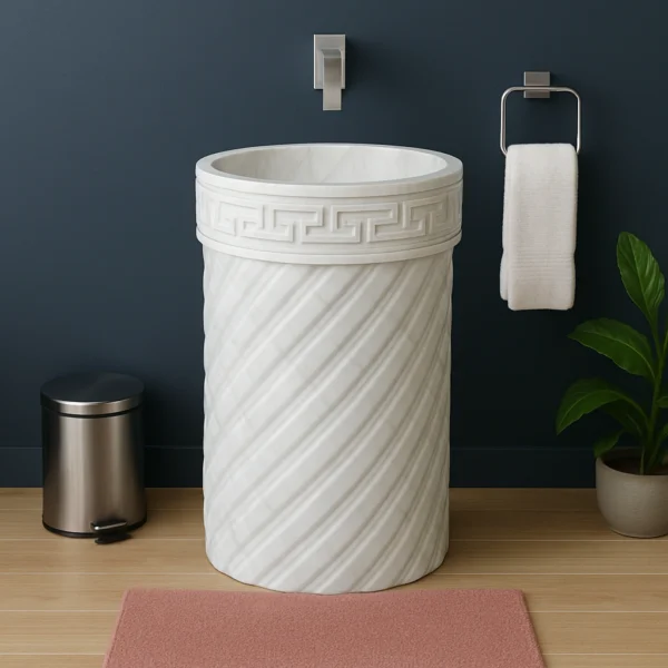 Marble Sink – Round Spiral Fluted Stone