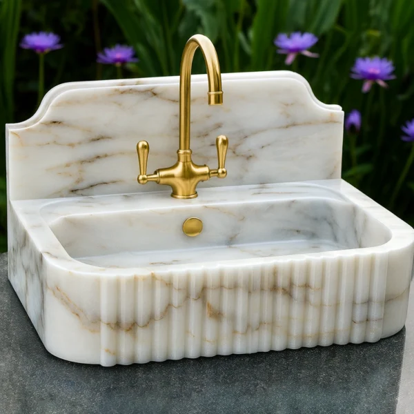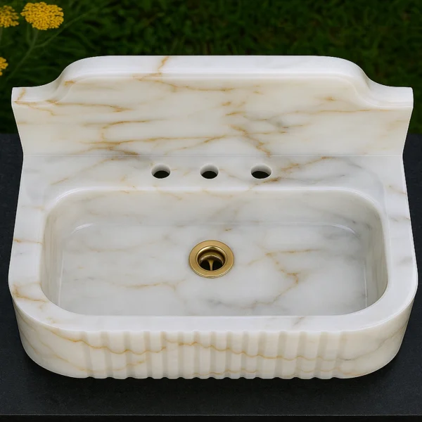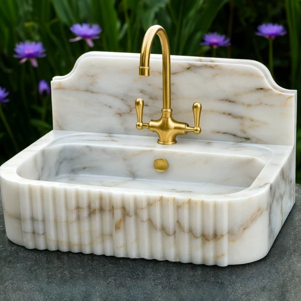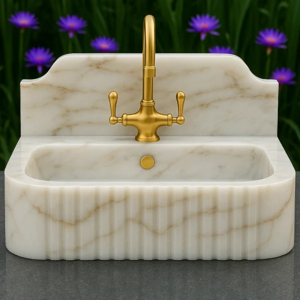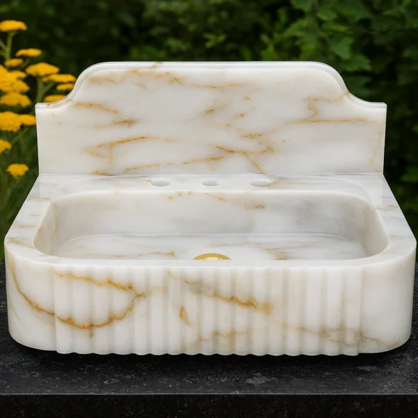 Handcrafted Marble Sink – Classic Design with Elevated Back Panel