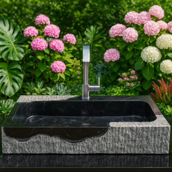 Handcrafted Modern Marble Sink with Raw Textured Exterior