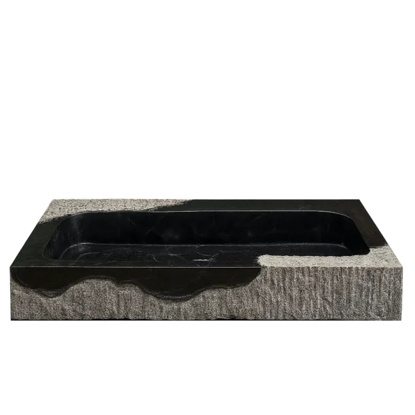 This handcrafted marble sink combines a smooth, sculpted inner basin with a naturally textured outer surface, creating a stunning contrast between raw nature and refined design. The solid block structure conveys strength and timeless craftsmanship, while the organic detailing highlights artisanal precision. Perfect for contemporary interiors or outdoor settings where natural elegance meets modern sophistication.