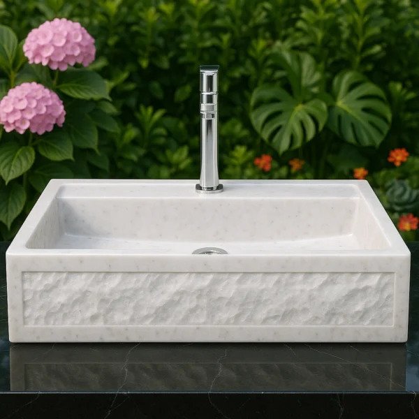 Handcrafted Modern Rectangular Marble Sink with Natural Textured Finish