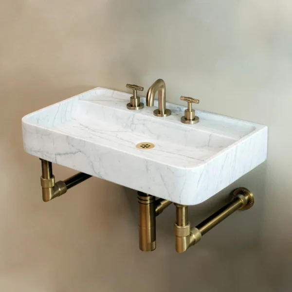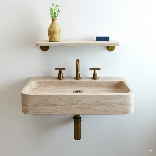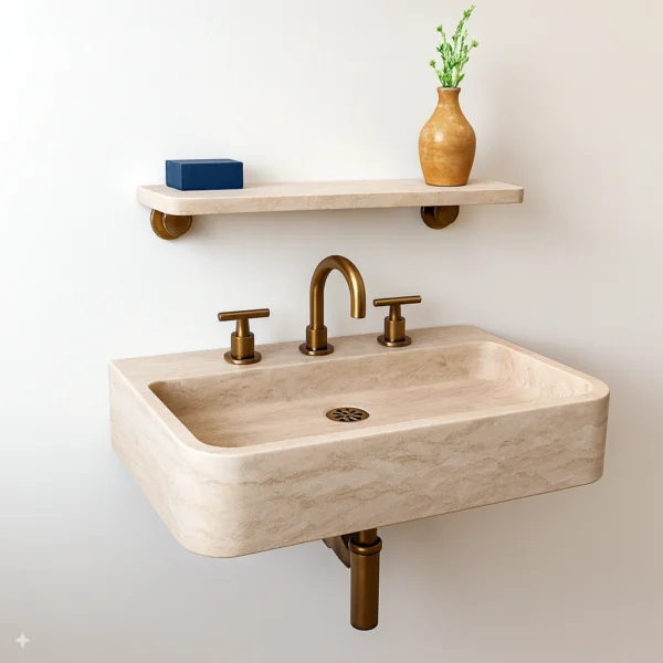Featuring a clean rectangular form with gently rounded edges, this marble sink adds refined elegance to any bathroom. Carved from a single block of natural stone, it embodies simplicity and timeless craftsmanship. Its wall-mounted structure makes it ideal for minimalist interiors. Each curve and detail is handcrafted to create a perfect balance of functionality and design harmony.
