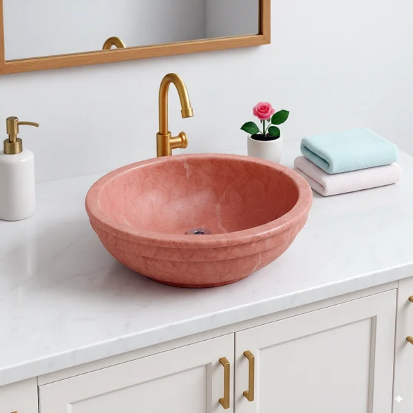 This handcrafted marble sink combines timeless design with modern craftsmanship. Its round shape and polished finish make it a stylish centerpiece for any bathroom. Durable and elegant, it offers both functionality and luxury, perfectly suited for contemporary and classic interiors.