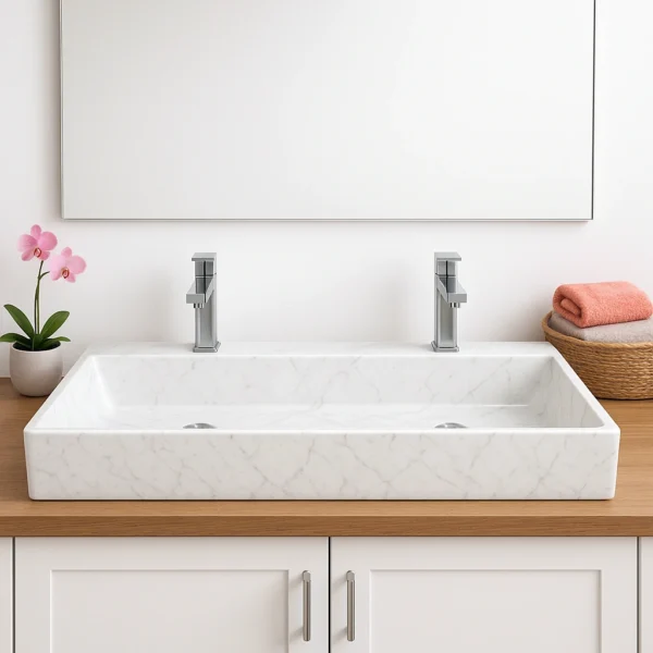 Marble Double Sink – Rectangular Vanity Basin