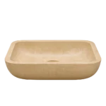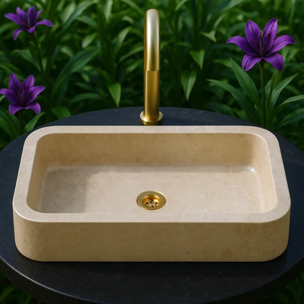 This handcrafted marble sink stands out with its smooth curves and clean geometry, offering a warm and modern aesthetic. Its rectangular form with rounded edges enhances both functionality and visual harmony. Carved from a single block of natural stone, it reflects timeless elegance and meticulous craftsmanship — a perfect piece for contemporary bathroom designs that value simplicity and refinement.