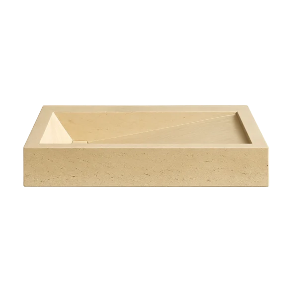 This marble sink features a striking geometric interior that captures the essence of contemporary design. Its angular basin guides the water flow with precision, creating both visual depth and functional elegance. The bold rectangular silhouette and solid stone body combine minimalist aesthetics with refined craftsmanship. Perfect for modern interiors seeking a statement piece with architectural character.
