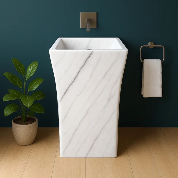 Modern Pedestal Marble Sink – Handcrafted Tall Stone Bathroom Basin