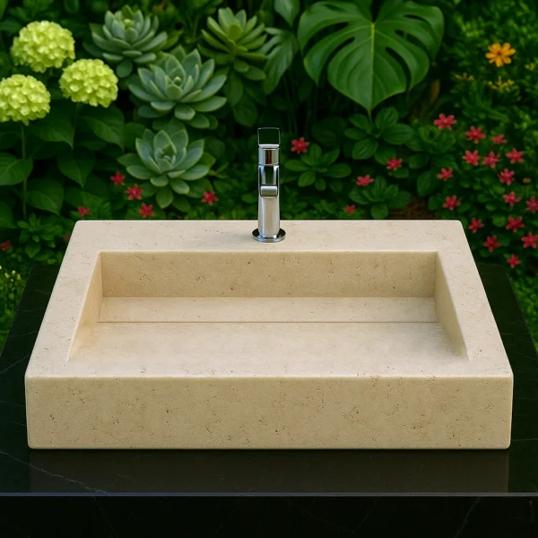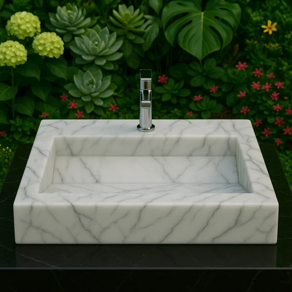 This marble sink features a clean rectangular silhouette that embodies refined simplicity and architectural precision. The wide inner basin and low-profile edges create a perfect balance between functionality and visual elegance. Handcrafted with meticulous detail, it highlights the harmony of proportion and geometry. Ideal for contemporary bathrooms or outdoor spaces seeking timeless sophistication.