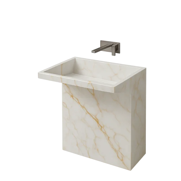 Pedestal Marble Sink – Modern Handcrafted Natural Stone Bathroom Basin (Copy)