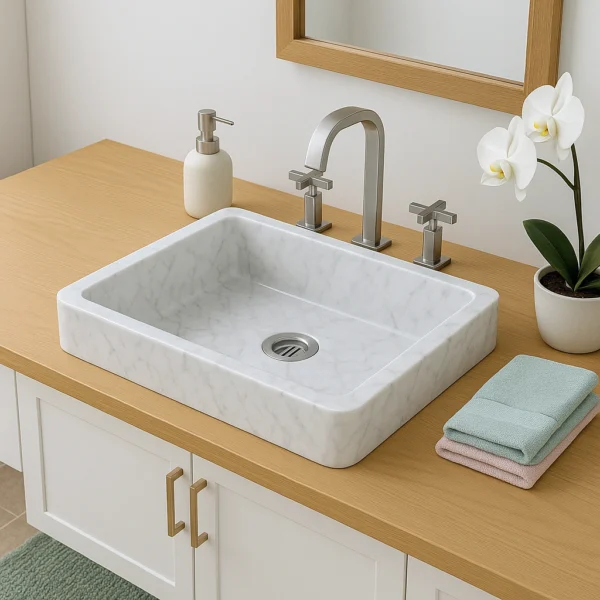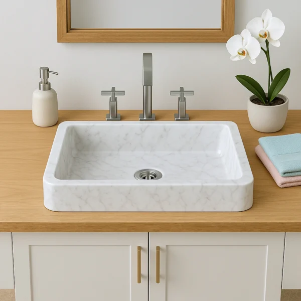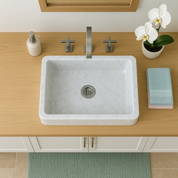 Semi-Undermount Marble Sink – Modern Rectangular Basin