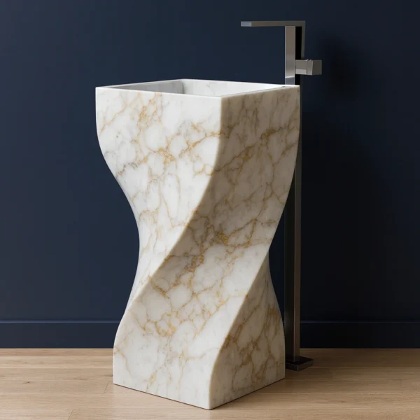 Twist Design Marble Pedestal Sink – Luxury Freestanding Stone Basin