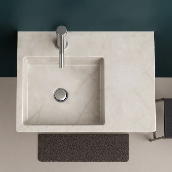 Elevate your bathroom design with this wall-mounted rectangular marble sink, handcrafted from natural stone. Its minimalist form and polished surface create a sleek, modern look while ensuring long-lasting durability. Perfect for compact or contemporary spaces, this marble basin adds both elegance and functionality to your bathroom vanity setup.
